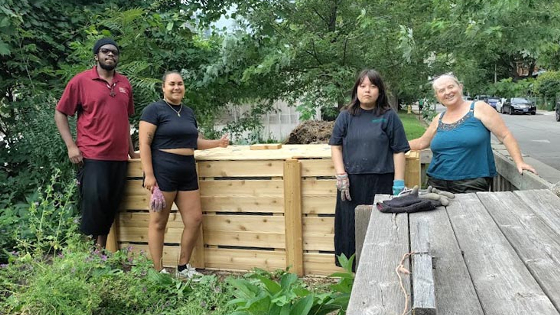 Here's (l-r) Tristan, Ella, Aamoo and me, receiving a new compost bin from FoodShare. Great program, great price! After 20-odd years of the previous bin, it is such a treat to start fresh. We take food waste from the neighbours, who kindly save it for us, as distinct from their Green Bin waste. Since the school food program is back to normal after the COVID period, we also pick up a bucket weekly from the school cafeteria, where Charmyne Urquhart cooks from scratch and provides a healthy meal every day at Winchester Public School, as she has done since the early days of the City of Toronto's support for school lunches. For more on this, see the Coalition for Healthy School Food.