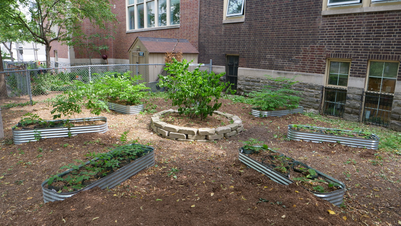 Winchester Public School is our longest-running school food garden, started in 2001. It’s an unusually large school garden and for this reason has become a destination for many visiting school groups, workshops and presentations as well as a food-producing garden feeding 400 kindergarten to Grade 8 students. As of Spring 2025, there will be a capital project that will result in losing some of the garden space. Students plant and harvest both formally as part of class time with specific curriculum objectives, and informally through the Garden Club, which operates one day per week throughout the school year during lunch recess. Vegetables and fruits go into the hot lunch program at the school and the food waste goes back into the outdoor compost bins. Summer programs in the school garden are also offered to local camps and day cares, and families through evening garden drop-ins. Youth are hired and trained to garden, design and implement programs. This keeps the garden maintained and the produce flowing to local families in need throughout summer.
